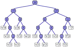 In the standard Huffman coding problem, it is assumed that any codeword can correspond to any input symbol. In the alphabetic version, the alphabetic order of inputs and outputs must be identical. Thus, for example, could not be assigned code , but instead should be assigned either or . This is also known as the Hu–Tucker problem, after T. C. Hu and Alan Tucker, the authors of the paper presenting the first -time solution to this optimal binary alphabetic problem,[12] which has some similarities to Huffman algorithm, but is not a variation of this algorithm. A later method, the Garsia–Wachs algorithm of Adriano Garsia and Michelle L. Wachs (1977), uses simpler logic to perform the same comparisons in the same total time bound. These optimal alphabetic binary trees are often used as binary search trees.[13]