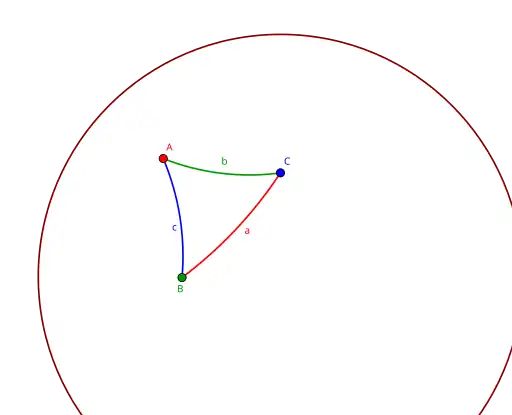 Describing relations of hyperbolic geometry, Franz Taurinus showed in 1826[4] that the spherical law of cosines can be related to spheres of imaginary radius, thus he arrived at the hyperbolic law of cosines in the form:[5]