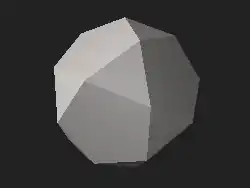 In geometry, an icosidodecahedron or pentagonal gyrobirotunda is a polyhedron with twenty (icosi-) triangular faces and twelve (dodeca-) pentagonal faces. An icosidodecahedron has 30 identical vertices, with two triangles and two pentagons meeting at each, and 60 identical edges, each separating a triangle from a pentagon. As such, it is one of the Archimedean solids and more particularly, a quasiregular polyhedron.