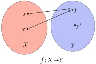 Given the function is said to take the value or take as a value if there exists some in the function's domain such that Similarly, given a set is said to take a value in if there exists some in the function's domain such that However, takes [all] values in and is valued in means that for every point in the domain of .