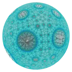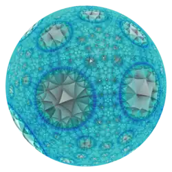 With Schläfli symbol {5,3,7}, it has seven dodecahedra {5,3} around each edge. All vertices are ultra-ideal (existing beyond the ideal boundary) with infinitely many dodecahedra existing around each vertex in an order-7 triangular tiling vertex arrangement.