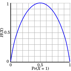 The special case of information entropy for a random variable with two outcomes is the binary entropy function, usually taken to the logarithmic base 2, thus having the shannon (Sh) as unit: