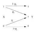 • A binary symmetric channel (BSC) with crossover probability p is a binary input, binary output channel that flips the input bit with probability p. The BSC has a capacity of 1 Hb(p) bits per channel use, where Hb is the binary entropy function to the base-2 logarithm:
