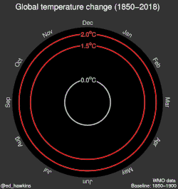 - ↑ Kahn, Brian (June 17, 2019). "This Striking Climate Change Visualization Is Now Customizable for Any Place on Earth". Gizmodo. Archived from the original on June 26, 2019. Developed in May 2018 by Ed Hawkins, University of Reading.
