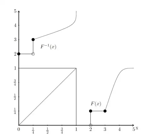 - Inverse distribution function for a precise mathematical definition for distributions with discrete components.