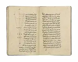 ![]() Opening bifolio of a manuscript of al-Kashi's Miftah al-Hisab. Copy created in Safavid Iran, dated 1656 | |
