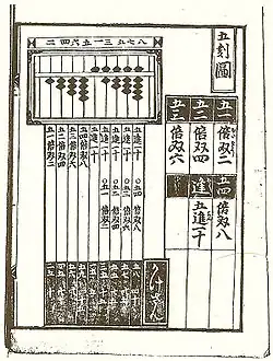 Records of mathematics in the early periods of Japanese history are nearly nonexistent. Though it was at this time that a large influx of knowledge from China reached Japan, including that of reading and writing, little sources exist of usage of mathematics within Japan. However, it is suggested that this period saw the use of an exponential numbering system following the law of .[3]