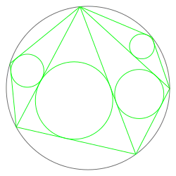In geometry, the Japanese theorem states that no matter how one triangulates a cyclic polygon, the sum of inradii of triangles is constant.[1]:p. 193