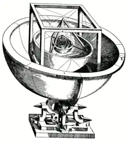 Kepler was convinced "that the geometrical things have provided the Creator with the model for decorating the whole world".[89] In Harmonice Mundi (1619), he attempted to explain the proportions of the natural world—particularly the astronomical and astrological aspects—in terms of music.[note 3] The central set of "harmonies" was the musica universalis or "music of the spheres", which had been studied by Pythagoras, Ptolemy and others before Kepler; in fact, soon after publishing Harmonice Mundi, Kepler was embroiled in a priority dispute with Robert Fludd, who had recently published his own harmonic theory.[90]