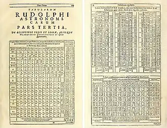 Kepler, at last, completed the Rudolphine Tables in 1623, which at the time was considered his major work. However, due to the publishing requirements of the emperor and negotiations with Tycho Brahe's heir, it would not be printed until 1627.[81]
