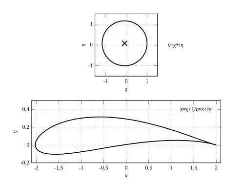 In 1943 Hsue-shen Tsien published a transform of a circle of radius into a symmetrical airfoil that depends on parameter and angle of inclination :[4]