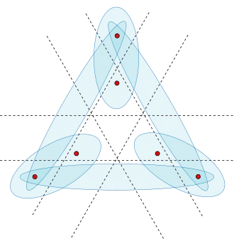 The -sets of a set of points in the plane are related by projective duality to the -levels in an arrangement of lines. The -level in an arrangement of lines in the plane is the curve consisting of the points that lie on one of the lines and have exactly lines below them. Discrete and computational geometers have also studied levels in arrangements of more general kinds of curves and surfaces.[1]