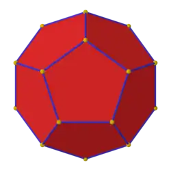 | share vertices and edges | share vertices and edges | share vertices, skeletons form dodecahedral graph | |||