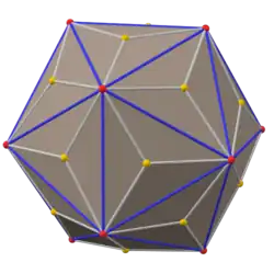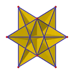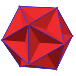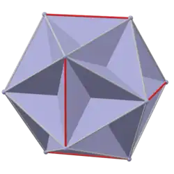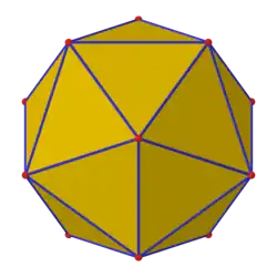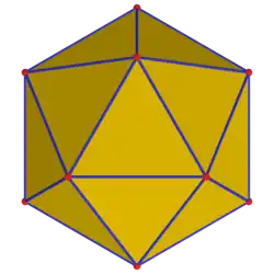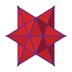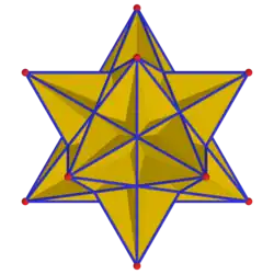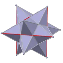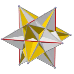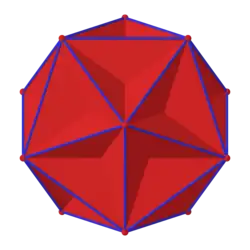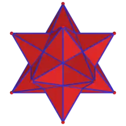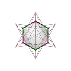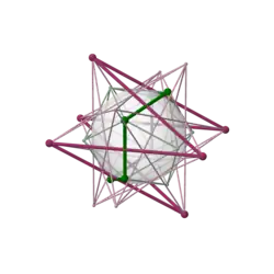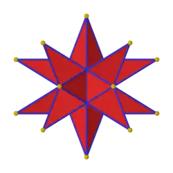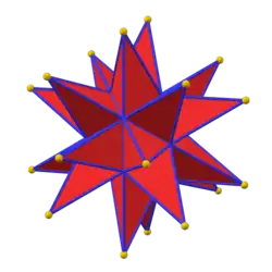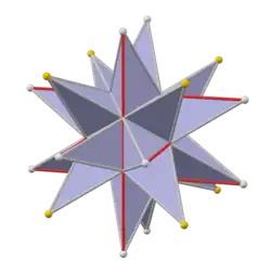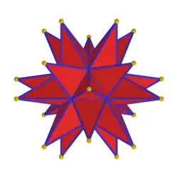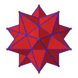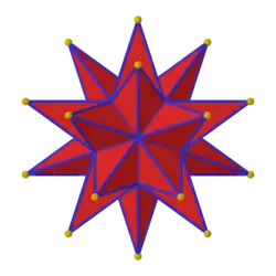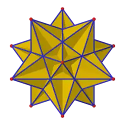 - ↑ "Another way to construct a great stellated dodecahedron via cumulation is to make 20 triangular pyramids [...] and attach them to the sides of an icosahedron." Weisstein, Eric W. "Great Stellated Dodecahedron". MathWorld. Retrieved 2018-09-21.