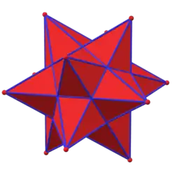 - ↑ "A small stellated dodecahedron can be constructed by cumulation of a dodecahedron, i.e., building twelve pentagonal pyramids and attaching them to the faces of the original dodecahedron." Weisstein, Eric W. "Small Stellated Dodecahedron". MathWorld. Retrieved 2018-09-21.