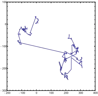 A Lévy flight is a random walk in which the step-lengths have a stable distribution,[1] a probability distribution that is heavy-tailed. When defined as a walk in a space of dimension greater than one, the steps made are in isotropic random directions. Later researchers have extended the use of the term "Lévy flight" to also include cases where the random walk takes place on a discrete grid rather than on a continuous space.[2]