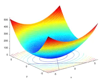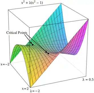 The solution corresponding to the original constrained optimization is always a saddle point of the Lagrangian function,[4][5] which can be identified among the stationary points from the definiteness of the bordered Hessian matrix.[6]