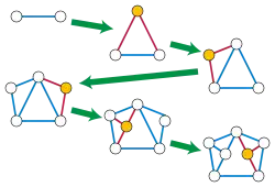 - Add a new vertex to the graph, together with edges connecting it to two previously existing vertices.