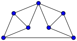 A pointed pseudotriangulation is a planar straight-line drawing of a graph, with the properties that the outer face is convex, that every bounded face is a pseudotriangle, a polygon with only three convex vertices, and that the edges incident to every vertex span an angle of less than 180 degrees. The graphs that can be drawn as pointed pseudotriangulations are exactly the planar Laman graphs.[3] However, Laman graphs have planar embeddings that are not pseudotriangulations, and there are Laman graphs that are not planar, such as the utility graph K3,3.