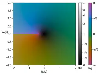 The range plot above also delineates the regions in the complex plane where the simple inverse relationship is true. implies that there exists an such that , where depends upon the value of . The value of the integer changes abruptly when is at the branch cut of , which means that ≤ 0, except for where it is ≤ −1/.