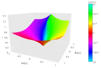 For each integer k there is one branch, denoted by Wk(z), which is a complex-valued function of one complex argument. W0 is known as the principal branch. These functions have the following property: if z and w are any complex numbers, then