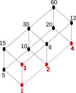- ↑ Of course, in this particular example, there exists only one element in that is comparable to which is necessarily itself, so the second condition "and " was redundant.