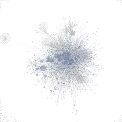 The typical force-directed algorithms are in general considered to run in cubic time (), where is the number of nodes of the input graph. This is because the number of iterations is estimated to be linear (), and in every iteration, all pairs of nodes need to be visited and their mutual repulsive forces computed. This is related to the N-body problem in physics. However, since repulsive forces are local in nature the graph can be partitioned such that only neighboring vertices are considered. Common techniques used by algorithms for determining the layout of large graphs include high-dimensional embedding,[7] multi-layer drawing and other methods related to N-body simulation. For example, the Barnes–Hut simulation-based method FADE[8] can improve the running time to be linearithmic, or per iteration. As a rough guide, in a few seconds one can expect to draw at most 1,000 nodes with a standard per iteration technique, and 100,000 with a per iteration technique.[8] Force-directed algorithms, when combined with a graph clustering approach, can draw graphs of millions of nodes.[9]