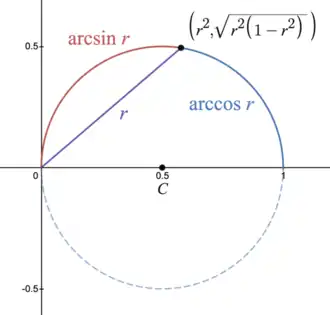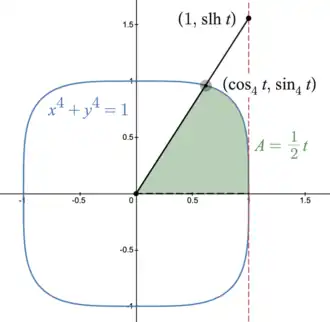 Using this parametrization with for a quarter of , the arc length from the origin to a point is:[31]