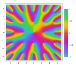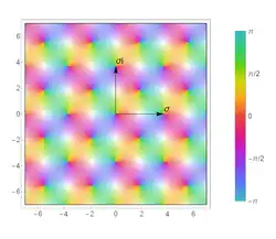 The sl function has simple zeros at Gaussian integer multiples of ϖ, complex numbers of the form for integers a and b. It has simple poles at Gaussian half-integer multiples of ϖ, complex numbers of the form , with residues . The cl function is reflected and offset from the sl function, . It has zeros for arguments and poles for arguments with residues