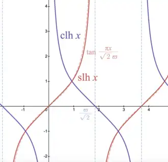 Similarly, the hyperbolic lemniscate sine slh and hyperbolic lemniscate cosine clh have a square period lattice with fundamental periods