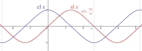 As complex functions, sl and cl have a square period lattice (a multiple of the Gaussian integers) with fundamental periods [4] and are a special case of two Jacobi elliptic functions on that lattice, .