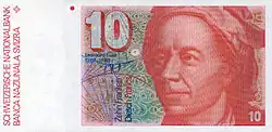 - ↑ "Schweizerische Nationalbank (SNB) – Siebte Banknotenserie (1984)". Swiss National Bank. Archived from the original on 23 April 2021. Retrieved 15 June 2021.