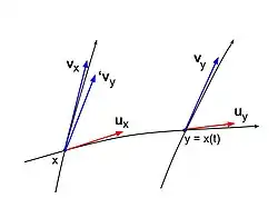 The idea of Lie derivatives is to use a vector field to define a notion of transport (Lie transport). A smooth vector field defines a smooth flow on the manifold, which allows vectors to be transported between two points on the same line of flow (This contrasts with connections, which allows transport between arbitrary points). Intuitively, a vector based at point is transported by flowing its base point to , while flowing its tip point to .