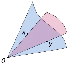 A cone is a convex cone if belongs to , for any positive scalars , , and any , in .[5][6] A cone is convex if and only if .