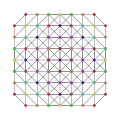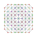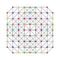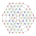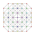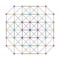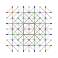 Symmetric orthographic projections of these 71 polytopes can be made in the A7, A6, A5, A4, A3, A2 Coxeter planes. Ak has [k+1] symmetry. For even k and symmetrically ringed-diagrams, symmetry doubles to [2(k+1)].