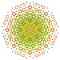 These 64 polytopes are each shown in these 10 symmetry planes, with vertices and edges drawn, and vertices colored by the number of overlapping vertices in each projective position.