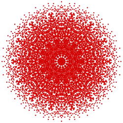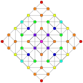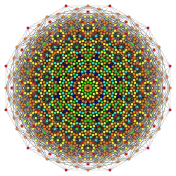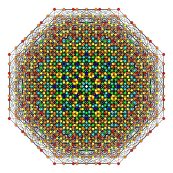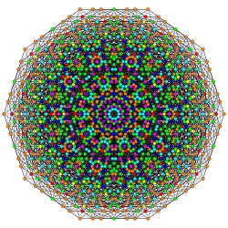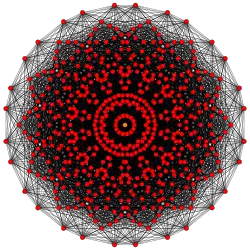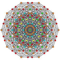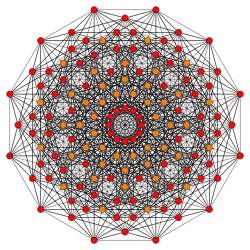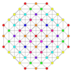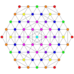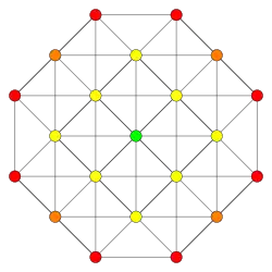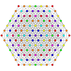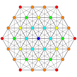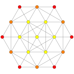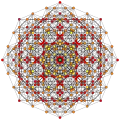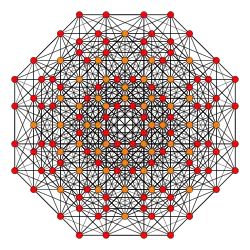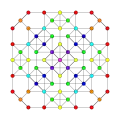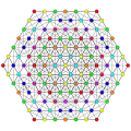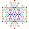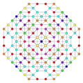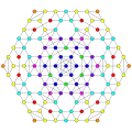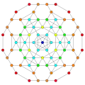 Symmetric orthographic projections of these 127 polytopes can be made in the E7, E6, D6, D5, D4, D3, A6, A5, A4, A3, A2 Coxeter planes. Ak has k+1 symmetry, Dk has 2(k-1) symmetry, and E6 and E7 have 12, 18 symmetry respectively.