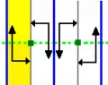 The 7 frieze groups, the two-dimensional line groups, with a direction of periodicity are given with five notational names. The Schönflies notation is given as infinite limits of 7 dihedral groups. The yellow regions represent the infinite fundamental domain in each.