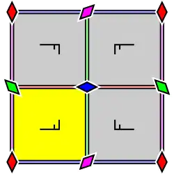 | p1 | p2 | pg | pm | cm | pgg | pmg | pmm | cmm | p4 | p4g | p4m | p3 | p3m1 | p31m | p6 | p6m | ||