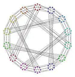 The Ljubljana graph is the Levi graph of the Ljubljana configuration, a quadrangle-free configuration with 56 lines and 56 points.[1] In this configuration, each line contains exactly 3 points, each point belongs to exactly 3 lines and any two lines intersect in at most one point.