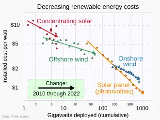 In science and engineering, a log–log graph or log–log plot is a two-dimensional graph of numerical data that uses logarithmic scales on both the horizontal and vertical axes. Power functions – relationships of the form – appear as straight lines in a log–log graph, with the exponent corresponding to the slope, and the coefficient corresponding to the intercept. Thus these graphs are very useful for recognizing these relationships and estimating parameters. Any base can be used for the logarithm, though most commonly base 10 (common logs) are used.