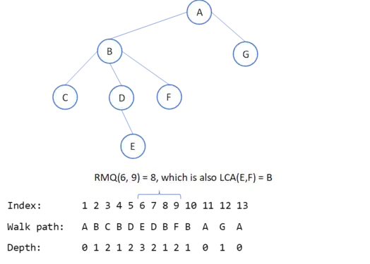 Despite that there exists a constant time and linear space solution for general RMQ, but a simplified solution can be applied that make uses of LCA’s properties. This simplified solution can only be used for RMQ reduced from LCA.