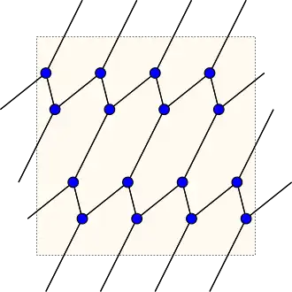 The Möbius–Kantor graph cannot be embedded without crossings in the plane; it has crossing number 4, and is the smallest cubic graph with that crossing number.[2] Additionally, it provides an example of a graph all of whose subgraphs' crossing numbers differ from it by two or more.[3] However, it is a toroidal graph: it has an embedding in the torus in which all faces are hexagons.[4] The dual graph of this embedding is the hyperoctahedral graph K2,2,2,2.