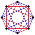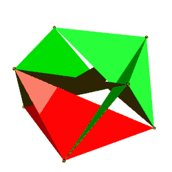 ![]() The 8 3-edges (4 in red, 4 in green) projected symmetrically into 8 vertices of a square antiprism. | |
