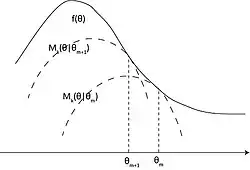 Taking the minorize-maximization version, let be the objective concave function to be maximized. At the m step of the algorithm, , the constructed function will be called the minorized version of the objective function (the surrogate function) at if