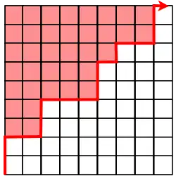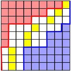 This lower boundary can be visualised like so, where the blue entries are smaller than :