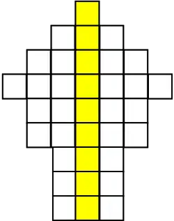 The yellow entries indicate the median of each row. If we mentally re-arrange the rows so that the medians align and ignore the discarded entries outside the boundaries,