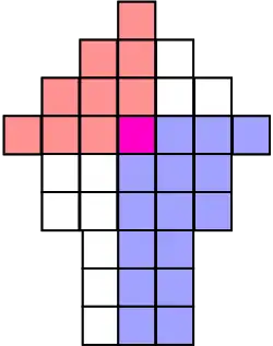 More generally, using the boundaries given by the and vectors from the previous section, we can assume that after some iterations, we have pinpointed the position of the medcouple to lie between the red left boundary and the blue right boundary:[4]: 149
