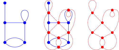- an edge between two vertices for each face of G in which their corresponding edges occur consecutively.