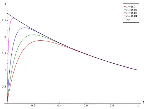 Since is very small, our first approach is to treat the equation as a regular perturbation problem, i.e. make the approximation , and hence find the solution to the problem